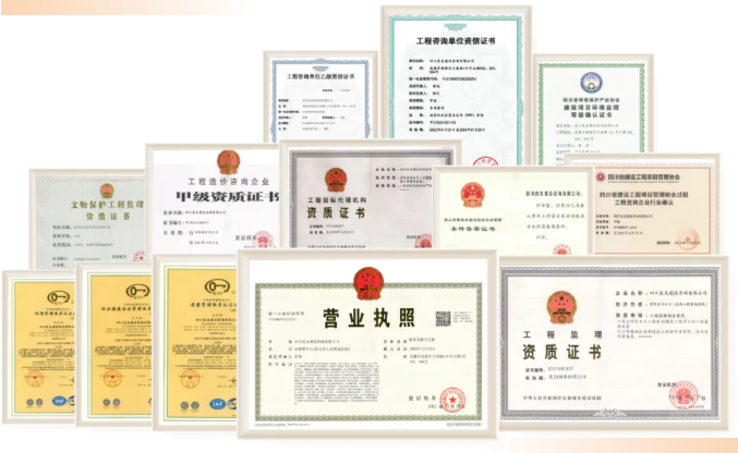 我司成立于 2000 年,經過二十余年的蓬勃發展,已壯大為千人企業,咨詢業務覆蓋祖國大江南北。公司致力于為客戶提供工程咨詢、招標采購、設計咨詢、BIM 咨詢、造價咨詢、項目管理、工程監理、數智科技等全方位的全過程工程咨詢服務。公司具有“工程監理綜合資質”、“工程造價咨詢甲級資質”、“工程招標代理甲級資質”、“政府采購代理甲級資質”、“中央投資項目招標代理甲級資質”、“工程咨詢單位甲級專業資信” 、“水利工程施工監理資質”、“文物保護工程監理資質”、“四川省建設工程項目管理和全過程工程咨詢企業行業確認甲級資質”、“軍工涉密業務服務安全保密條件備案證書”等多項資質,并通過質量管理、環境管理、職業安全健康管理、應急預案管理、客戶滿意度測評服務等 9 項管理體系認證。